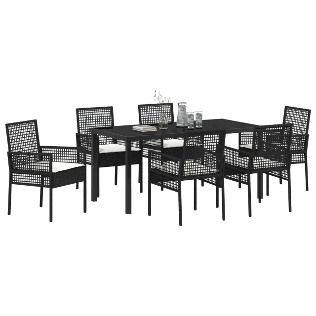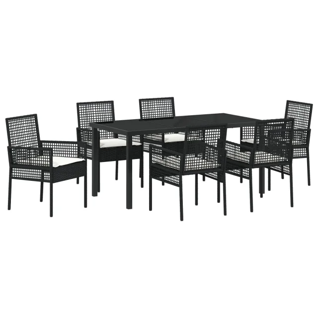 vidaXL 7-delni vrtni jedilni set z blazinami črnega poli ratana