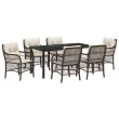 vidaXL 7-delni vrtni jedilni set z blazinami Rjav Poli Ratan