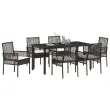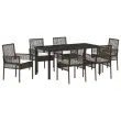 vidaXL 7-delni vrtni jedilni set z blazinami Rjav poliratana