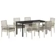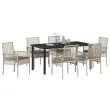 vidaXL 7-delni vrtni jedilni set z blazinami svetlo sivi poli ratan
