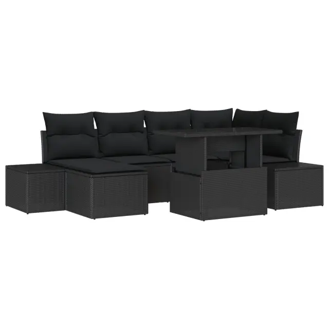 Ta 7-delna vrtna kotna kavčna garnitura je popoln kompakt udobja in stila za vašo zunanjo chill cono, idealna za druženje na soncu ali senco. Klasična črna poli ratanska tkanina se super ujema z njeno trdno obliko, kar jo naredi odličnega dodatek k vsakemu balkonu, vrtu ali patio, kjer se lahko sprostite in uživate v družbi.
