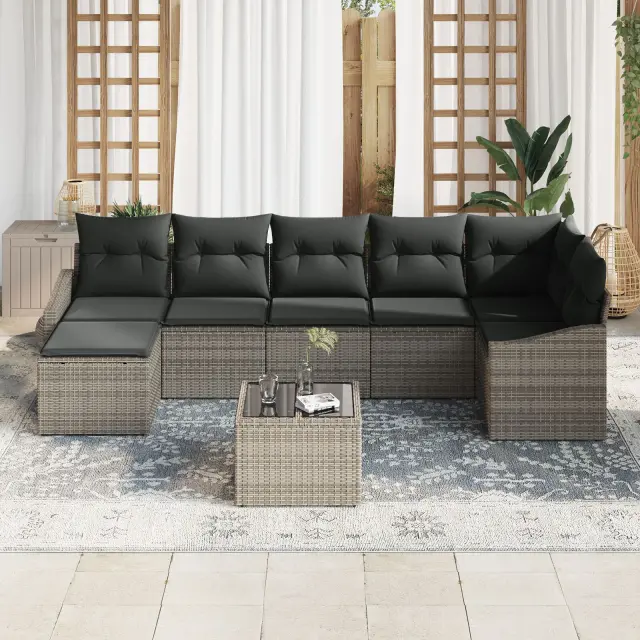 Ta vrtni sekcijski kavč zgleda super in je mega udoben, kar ga dela idealnega za zunanje življenje. S sodobno zasnovo in mehko sivo blazino je super za druženje s prijatelji ali družino ter doda pridih elegance tvojemu patiu ali balkonu.