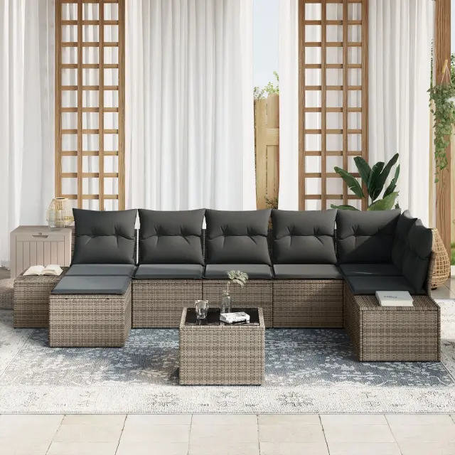 Ta zunanji kavčni set je zasnovan, da osvetli vaš vrt, balkon ali teraso s svojim modernim izgledom in uporabnimi lastnostmi. V trendovski sivi barvi ponuja udobno sedenje, idealno za druženje, ležerenje ali družinske zabave, tako znotraj kot zunaj.