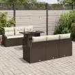 Ta 7-delna vrtna sedežna garnitura z blazinami je vse o slogu in udobju. Super je za zunanje druženje in sproščene sončne dni. Na voljo za do šest oseb, ima sodoben pridih, ki dvigne katerikoli zunanji prostor, naj bo to majhen balkon, prostorna terasa ali živahen vrt. Bogat rjav ratan in mehke kreme blazine ustvarjajo prijeten prostor za sproščanje in uživanje.