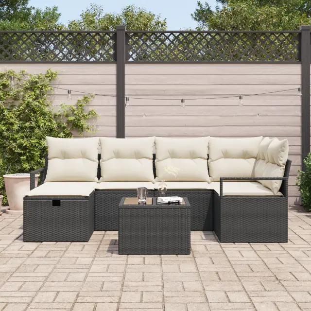 Ta vrtnim set nudi udobje in stil na prostem s modularno zasnovo. Idealno za balkone in terase, ponuja zadostno prostor za do šest ljudi, kar je ravno prav za druženje ali uživanje v lepo vreme.