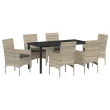 vidaXL 7-delni vrtny jedilni set z blazinami Svetlo siva poli ratan