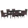 vidaXL 7 koščkov set vrtnega jedilnega seta Rjava Poli ratan
