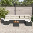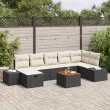 Ta zunanja sofa set s štirimi sedeži je popolna kombinacija stila in funkcionalnosti. Klasičen črn poli ratan v kombinaciji s kremnimi blazinami daje sijoč videz, odlična za sončne dni ali sproščene večere pod zvezdami.