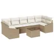Ta vrtna sedežna garnitura kombinira stil in udobje, kar jo dela odlično izbiro za vaš zunanji prostor. Elegantna bež barva se lepo ujema s svetlim belimi blazinami, kar je fenomenalno za sproščanje ali smeh s prijatelji.