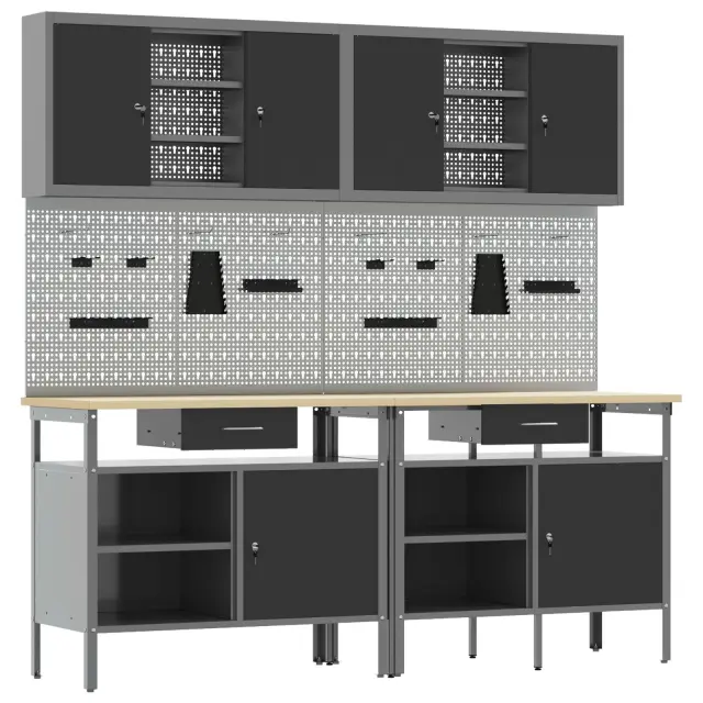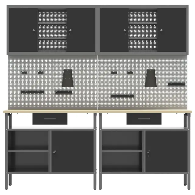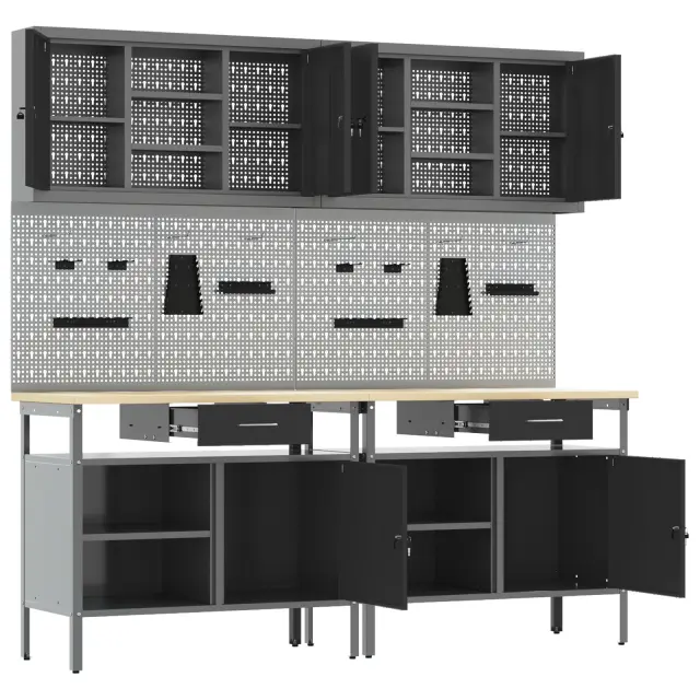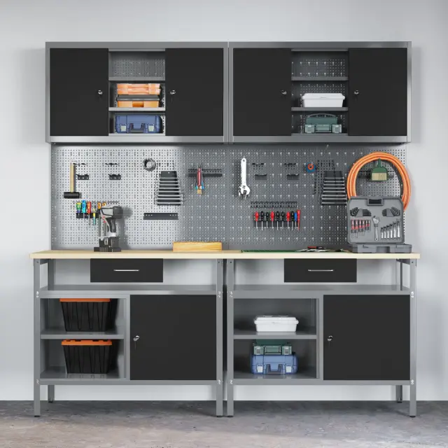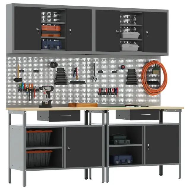Ta set delovne mize za shranjevanje industrijskih orodij je res pravi hit za slog in funkcionalnost, kar ga naredi nepogrešljivega za vsakogar, ki se ukvarja z DIY ali je obrtnik. S svojo trdno jekleno konstrukcijo in pametno zasnovo enostavno podpira tvoja orodja in ponuja urejeno območje, ki povečuje produktivnost.