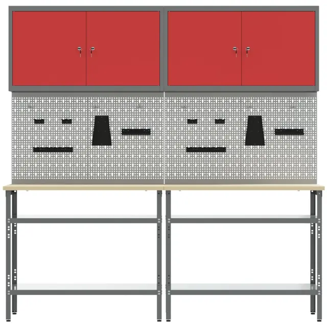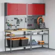 Industrijski set za shranjevanje orodij na steni je mora imeti za vsako delavnico ali garažo. S svojo kul sivo in rdečo barvno kombinacijo združuje funkcionalnost s sodobnim stilom, kar omogoča, da orodja fino razporedite in dodate čisto industrijski pridih vašemu prostoru.