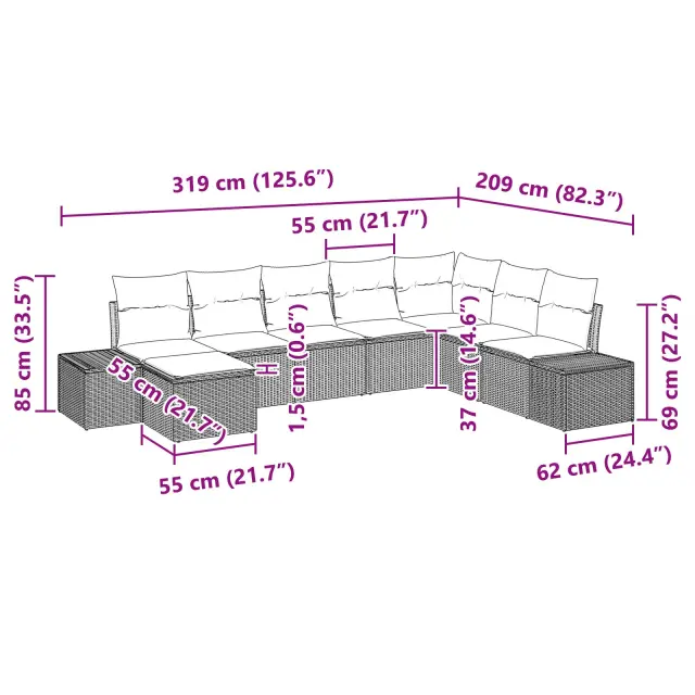 Ta set vrtnih kavčev je super način, da popestriš svoj zunanji prostor, idealen za sproščanje ali druženje. Na balkonu ali terasi ponuja eleganten sodoben dizajn z bež polietilenskim ratanom in udobnimi krem blazinicami. Gre za udobje in stil pri tvojih zunanjih druženjih!