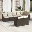 Ta vrtnarj set je odlična izbira za zunanje pohištvo, super za terase in vrtove. S svojo elegantno rjavo poly rattan obdelavo udobno sprejme do osem oseb - idealno za družabne dogodke ali prijetne večerje na prostem.