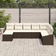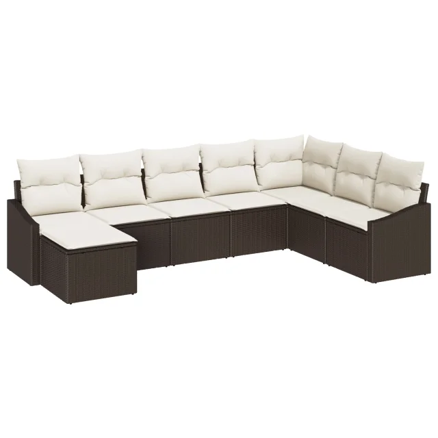 Ta vrtni jedilni set je odlična izbira za zunanja srečanja, saj nudi stilno in praktično površino za tvoje goste. S prostornim kotnim kavčem, ki sprejme do 8 ljudi, ta set prinaša sodoben izgled, ki polepša vsak balkon ali vrt s kombinacijo rjavega poly ratana in mehkih smetanastih blazin.