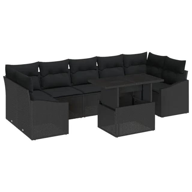 Osveži svoj zunanj prostor s tem prostornim vrtnim sofarskim setom, ki združuje stil in udobje. Ta eleganten set iz črnega poli ratana prinaša udobne blazine, ki zagotavljajo super prostor za druženje, ali se preprosto sprostiš s prijatelji in družino.