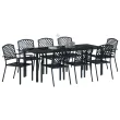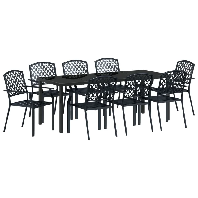 Ta 9-delna jedilna garnitura za vrt je točno to, kar potrebuješ za zunanja druženja. Ponuja prostor za osem ljudi brez težav. Eleganten okvir iz črnega prašno lakiranega jekla doda sodoben pridih. To jo dela za odličen dodatek na tvoji terasi ali vrtu, saj združuje funkcionalnost in eleganco.