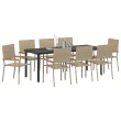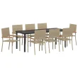 Ta 9-delna vrtna jedilna garnitura združuje moderni stil in praktičnost, kar jo dela odlična izbira za zunanje jedilnice in druženja. Z obsežno pravokotno mizo in osmimi udobnimi stoli je pravi hit za družabne dogodke, dodaja čudovit pridih vsaki terasi, vrtu ali balkonu.