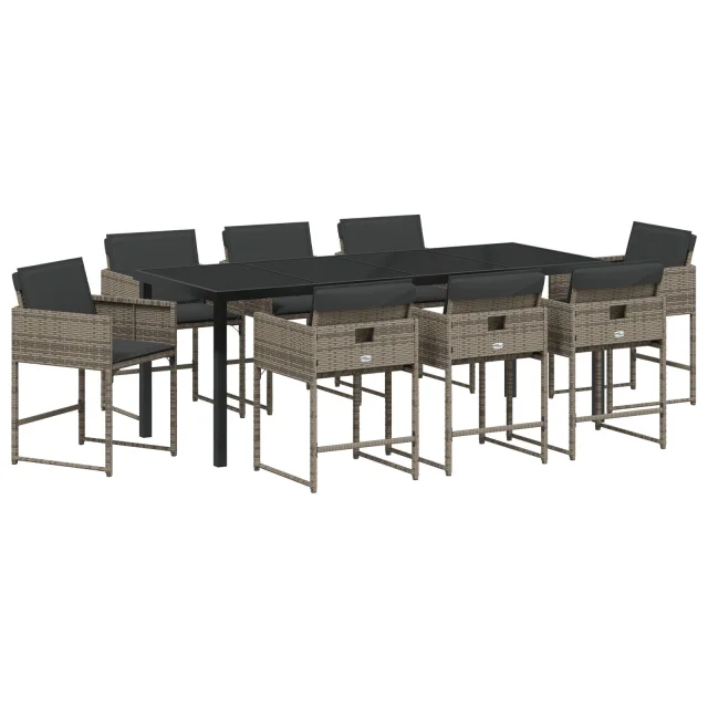 Ta vrtna jedilna garnitura povezuje stil in udobje, saj ima eleganten dizajn, ki se odlično prilega vsakemu zunanjemu prostoru. Popolna je za družinska srečanja ali druženje s prijatelji, saj udobni stoli z mehkimi blazinami in velika miza poskrbijo, da je tvoja zunanja dnevna soba idealna jedilnica na terasi, balkonu ali v vrtu.