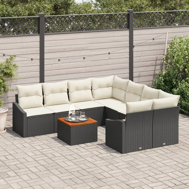 vidaXL 9-delna vrtna sedežna garnitura je odlična izbira za druženje zunaj. Ima super L-oblikovano zasnovo, ki nudi veliko prostora za sedenje in koristno shranjevanje za tvojo zunanjo opremo. Idealen je za vroče poletne dni.