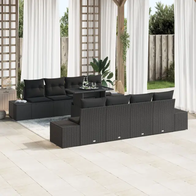 Ta vrtna sedišna garnitura ima super dizajn, popoln za sproščanje in uživanje na prostem, ter hkrati daje tvoji terasi čudovit in udoben videz. Narejena je iz trpežnega poli ratana in udobnega sedenja, idealno je mesto za druženje družine in prijateljev ter se lepo uklaplja v vrtno dekoracijo.
