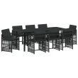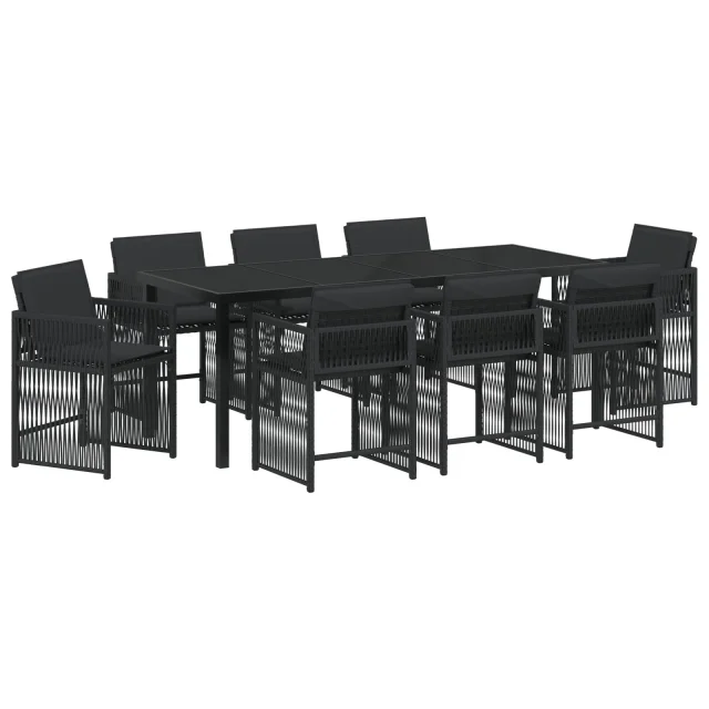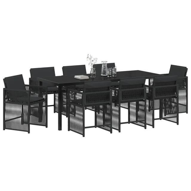 Ta vrtnarska jedilna garnitura je odlična kombinacija sloga in funkcionalnosti, primerna za zunanjo prehrano in sproščanje. Ima osem stolov in prostorno jedilno mizo, kar ustvarja prijetno okolje za druženja s prijatelji in družino.