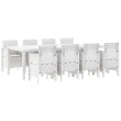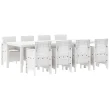 Ta 9-delni vrtni set za malico prihaja s pravokotno mizo in osmimi stoli, kar ga dela popolnega za družabne dogodke, jedilno izkušnjo na prostem ali sproščena srečanja. Eleganten beli videz se lepo ujema z vsakim vrtom, teraso ali ploščadjo in prinaša sodoben pridih ob vsaki priložnosti.