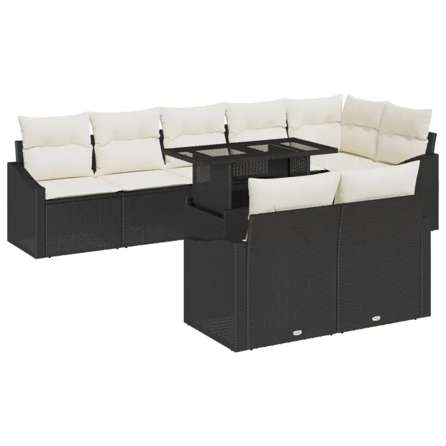 Ta 9-delni set vrtnega kavča prinaša stilsko zunanjo izkušnjo, narejen iz trpežnega ratana in mehkega poliestra, kar ustvarja prijeten in udoben prostor. Odlično je za druženja na vrtu, balkonu ali patio, ta sekcijski kavč omogoča prostorno postavitev, kar nudi prijetno vzdušje za sprostitev in smeh zunaj.