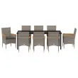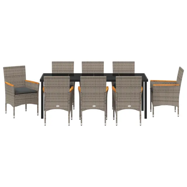 Ta 9-delni vrtnarski jedilni set združuje stil in praktičnost za zunanje prostore, popoln za navdušene jedce. S pravokotno mizo in osmimi udobnimi stoli, je zasnovan za ustvarjanje prijetnega vzdušja na vašem balkonu, terasi ali vrtu.