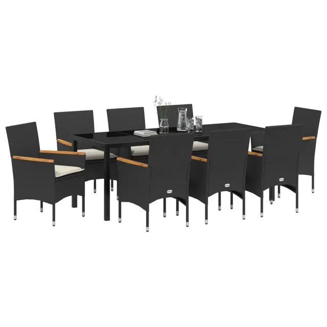 Ta 9-delni vrtnarski jedilni set združuje eleganco in funkcionalnost, kar ga naredi za odlično izbiro za zunanjo jedilnico. Ima veliko pravokotno mizo in osem udobnih stolov, super za družbe na vašem balkonu, terasi ali vrtu.