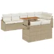 Ta štirisedežni zunanji kavč in jedilni set v bež barvi ustvarja stilno in sproščeno vzdušje za druženje ali počitek na vašem vrtu ali balkonu. Ima sodoben pridih, ki meša eleganco s prakso, kar je idealno za družinske večerje ali sproščeno druženje s prijatelji.