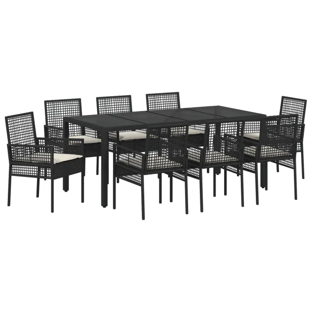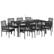 vidaXL 9-delni vrtni jedilni set črni poli ratan