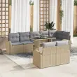 Ta vrtni kavč set je super izbira za zunanjo opremo, zasnovan, da osveži tvojo teraso ali balkon in ponudi veliko prostora za druženje. Njegov sodoben stil združuje bež poli ratan in udobne sive blazine, kar ti omogoča, da se sprostiš v slogu.