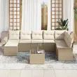 Povečaj svoje zunanje druženje s vidaXL 9-delnim vrtno-kavč setom. Povezuje moderen stil s praktično rabo. Kul bež in krem barve, skupaj z videzom prepletenega ratana, ustvarjajo prijetno vzdušje, idealno za patio, vrtove ali balkone.