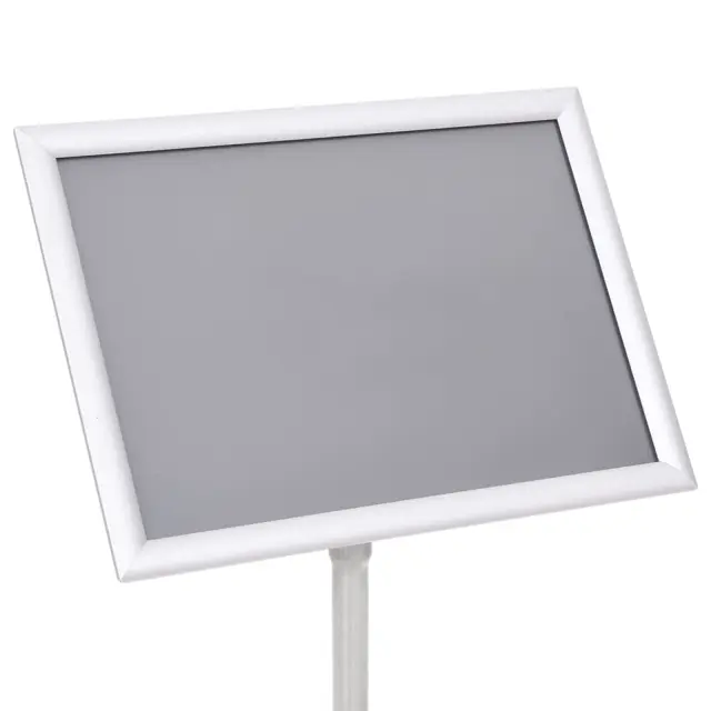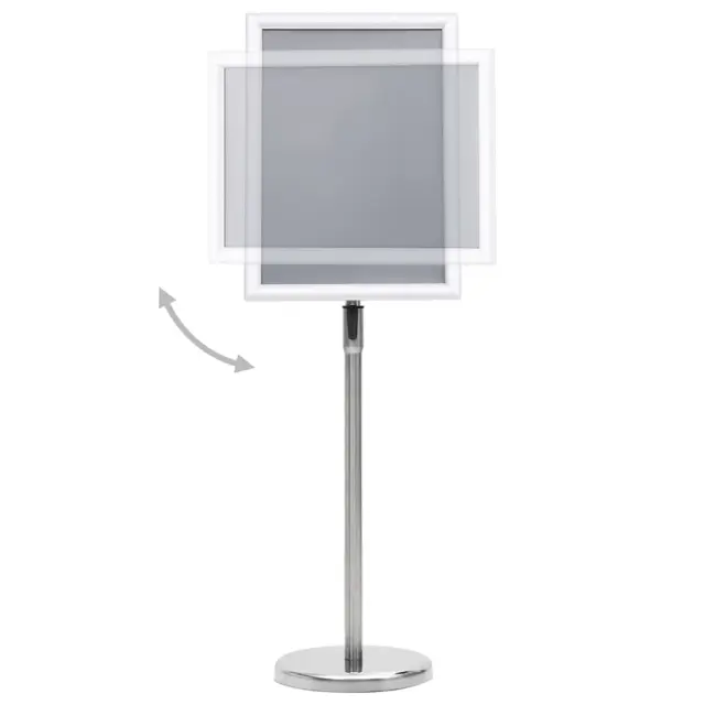 To stojalo za plakat je popolnoma nastavljivo za različne potrebe. Izdelano je iz vzdržljivega okvirja iz lahke aluminijaste zlitine ter je primerno za 1 A3 plakat. Ploščo stojala lahko zavrtite pod katerimkoli kotom, saj je zelo fleksibilna. Prozorna PVC zaščitna folija ščiti plakat pred prahom in prstnimi odtisi, da bo ostal čist. Sistem za spenjanje omogoča hitro namestitev plakata na stojalo. Ker je stojalo majhno, zavzame malo prostora in je preprosto za prenašanje.