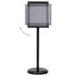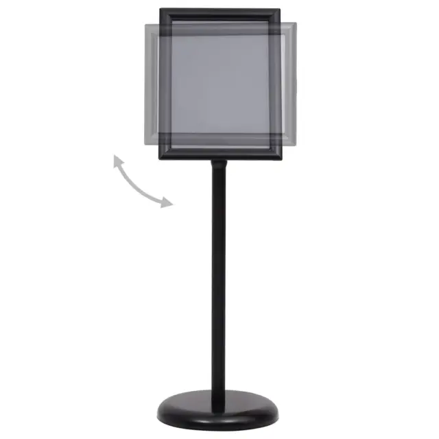 To stojalo za plakat je popolnoma nastavljivo za različne potrebe. Izdelano je iz vzdržljivega okvirja iz lahke aluminijaste zlitine ter je primerno za 1 A4 plakat. Ploščo stojala lahko zavrtite pod katerimkoli kotom, saj je zelo fleksibilna. Prozorna PVC zaščitna folija ščiti plakat pred prahom in prstnimi odtisi, da bo ostal čist. Sistem za spenjanje omogoča hitro namestitev plakata na stojalo. Ker je stojalo majhno, zavzame malo prostora in je preprosto za prenašanje.