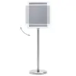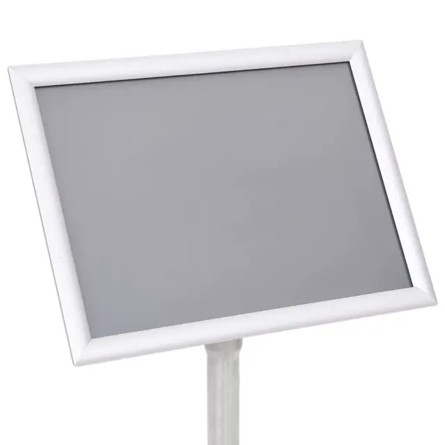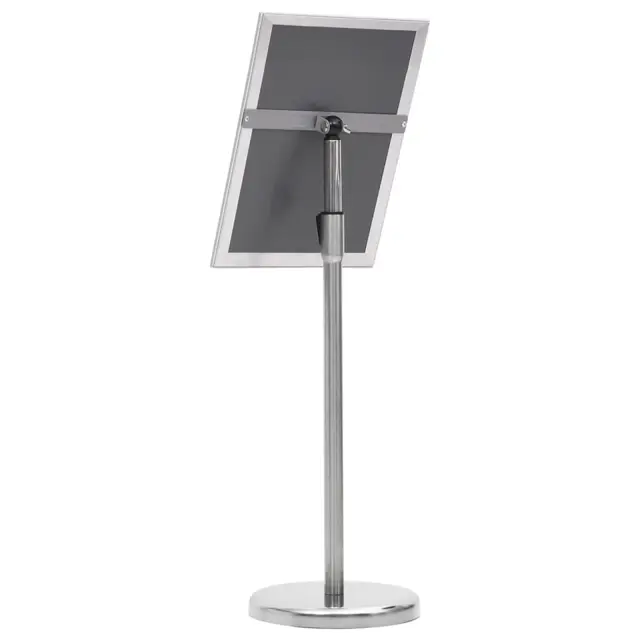 To stojalo za plakat je popolnoma nastavljivo za različne potrebe. Izdelano je iz vzdržljivega okvirja iz lahke aluminijaste zlitine ter je primerno za 1 A4 plakat. Ploščo stojala lahko zavrtite pod katerimkoli kotom, saj je zelo fleksibilna. Prozorna PVC zaščitna folija ščiti plakat pred prahom in prstnimi odtisi, da bo ostal čist. Sistem za spenjanje omogoča hitro namestitev plakata na stojalo. Ker je stojalo majhno, zavzame malo prostora in je preprosto za prenašanje.