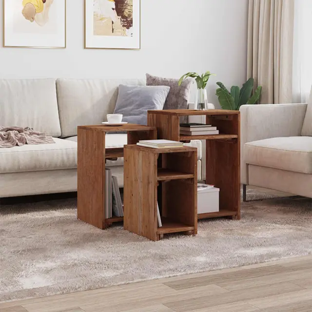Ta set accent miz je prava rešitev za vsakogar, ki želi osvežiti svoj dom s stilom in trpežnostjo. Mize imajo usklajen videz, zahvaljujoč bogatim rjavim odtenkom, ki prinašajo toplino in eleganco. Namenjene so notranji uporabi, enostavno se prilagajajo različnim priložnostim in lepo pokažejo lepoto in moč trdega mahagonijevega lesa ob nudijo funkcionalno površino.