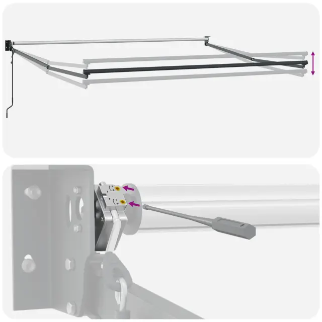 Ta avtomatska retraktibilna tenda je zasnovana, da ti zagotovi vrhunsko senco na balkonu ali terasi, kar tvojim zunanjim prostorom daje več udobja in prijetnosti. Sijajne rumene in sive črte dodajo sodoben pridih, kar to naredi za stilno značilnost vsakega zunanjega prostora.