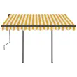 S to samodejno zložljivo tendo si ustvarite prijeten in hladen prostor na vaši terasi, ter se zaščitite pred UV žarki! Ta zunanja tenda je izdelana iz nerjavečega aluminijastega okvirja s prašnim premazom, zato je lahka in hkrati trdna. Stabilnost ji dodaja močan železni steber. Tkanina tende je izdelana iz poliestra visoke gostote s PU prevleko, ki je vodoodporna in UV-odporna. Naklon in višino lahko prilagodite svojim potrebam. S priloženim daljinskim upravljalnikom lahko preprosto odprete in zaprete samodejno zložljivo tendo ali pa jo nastavite s pomočjo dolge ročice. Tenda je opremljena s senzorjem za veter, ki poskrbi za samodejno zapiranje ob vetrovnih dneh. LED svetilke zagotavljajo energijsko varčno osvetlitev ponoči.Barva blaga: Rumena in belaBarva okvirja: AntracitnaMaterial: Prašno premazan aluminij, železo, blago (100 % poliester) s PU oblogoCelotna velikost: 300 x 250 cm (D x Š)Velikost stebra: 300 x 245 cm (Š x V)Napetost: 230V~ , 0,68A; 50/60HzMoč: 155 WNavor: 20 NmHitrost: rpm 13LED napetost: 12 VPotrebno sestavljanje: Da 3070113