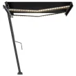 Ta zunanja markiza je izdelana iz nerjavečega aluminijastega okvirja s prašnim premazom, zato je lahka in trdna. Blago prostostoječe tende je izdelano iz poliestra visoke gostote s PU oblogo, zato je odporno na vodo in UV. Naklon in višino lahko nastavite po želji. Močan steber se vrti za 360 stopinj, zato lahko markizo nastavite po želji. Avtomatsko zložljivo tendo lahko brez težav odprete in zaprete s pomočjo priloženega daljinskega upravljalnika. Markiza je opremljena s senzorjem za veter, ki poskrbi za samodejno zapiranje ob vetrovnih dneh. LED svetilke zagotavljajo energijsko varčno osvetlitev ponoči.
