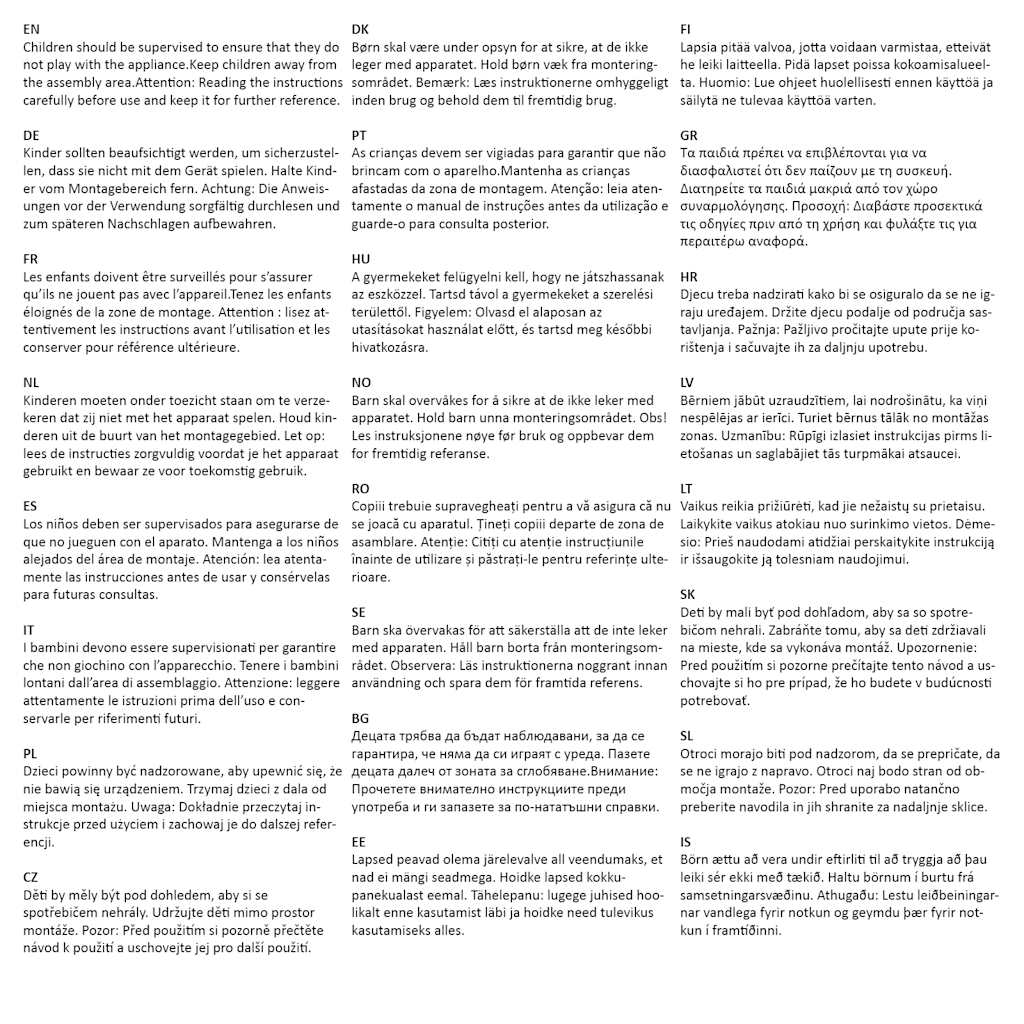 Otroci morajo biti pod nadzorom, da se prepričate, da se ne igrajo z napravo. Otroci naj bodo stran od območja montaže. Pozor: Pred uporabo natančno preberite navodila in jih shranite za nadaljnje sklice.