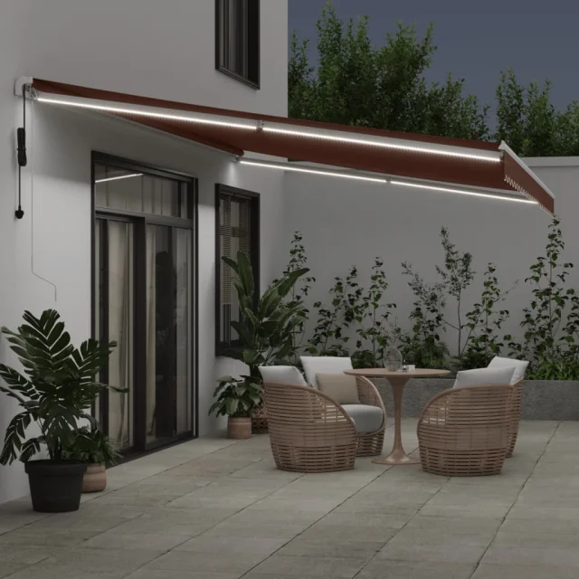 vidaXL Avtomatsko zložljiva tenda LED rjava 600x300 cm