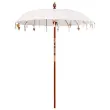 Ta Balijski dežnik, s svojo okroglo obliko, prinaša eksotično vzdušje v vaš zunanji prostor. Združuje mirne balijske estetike s praktičnim dizajnom. Je popoln za vrtove ali terase, saj nudi senco in dodaja vizualno prisotnost z ročno tkano obrtjo.