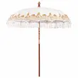 Ta balijski sončnik vnese lepo balijsko estetiko v vaš zunanji prostor. Z veliko senca njegov vrhunski trden leseni drob, bombažna zasnova in bambusova rebra ustvarjajo prijetno vzdušje, pravo za mirne trenutke v vrtu. Ne glede na to, ali je postavljen v dvorišču ali na terasi, naravne barve in nežne obrobe bogatijo prostor s tropsko eleganco, povabijo pa k sprostitvi in udobju med poletjem.