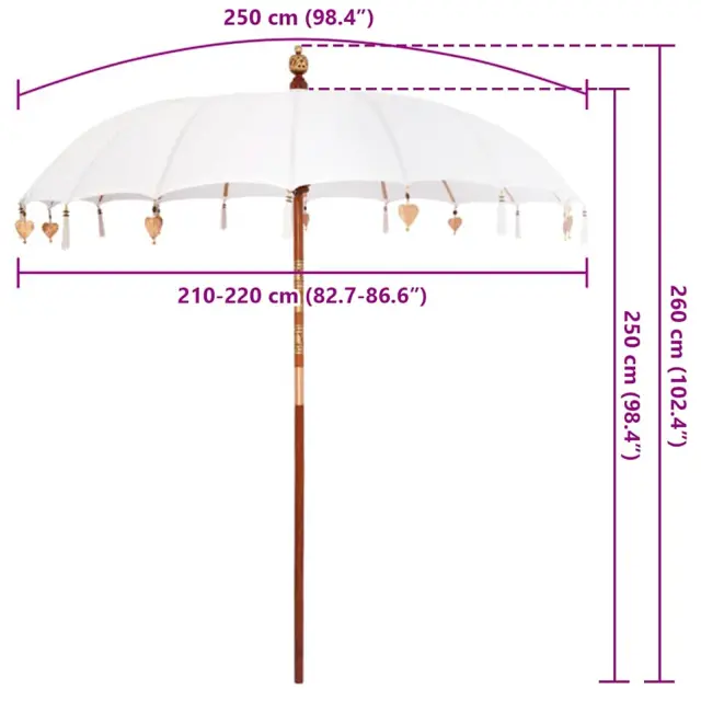 Ta Balijski dežnik, s svojo okroglo obliko, prinaša eksotično vzdušje v vaš zunanji prostor. Združuje mirne balijske estetike s praktičnim dizajnom. Je popoln za vrtove ali terase, saj nudi senco in dodaja vizualno prisotnost z ročno tkano obrtjo.