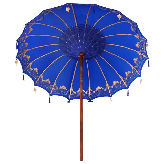 Balijski dežnik je odličen zunanji dežnik, ki vsakemu vrtu ali terasi doda vonj po eksotični eleganci. Ima čudovito okroglo nadstrešnico iz bombaža, vezeno z unikatnimi ročnimi detajli. Popoln je za poletna druženja in ponuja nujno senco z velikim premerom. Njegov miren balijski dizajn ponuja naravno privlačnost, ki je idealna za obedovanje na prostem ali sproščanje pod tem čudovitim dežnikom.