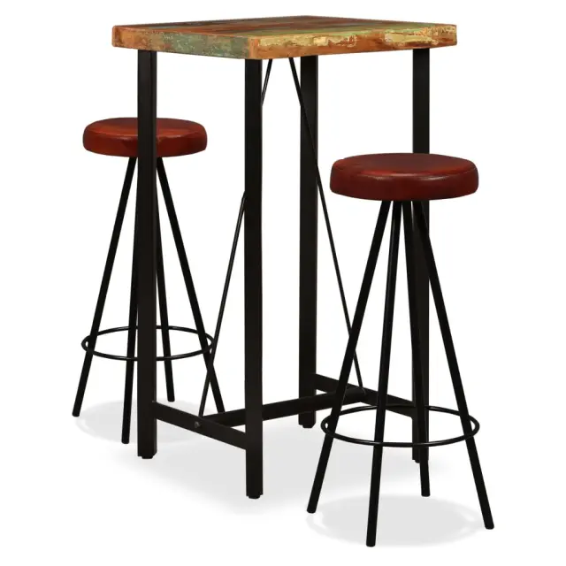 vidaXL Barska garnitura 3-delna trden predelan les in pravo usnje