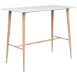 Naša barska mizica ima vzdržljivo površino iz mediapana in močne kovinske noge z videzom lesa. Ti barski stolčki imajo ergonomsko oblikovan sedež z nizkim naslonjalom za hrbet. Te stole za ob pult iz robustne PP plastike podpirajo močne kovinske noge s prašnim premazom. Stoli so trdni in vzdržljivi.