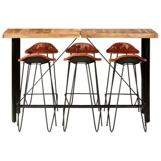 vidaXL Barska garnitura 7-delna trden akacijev les in pravo usnje