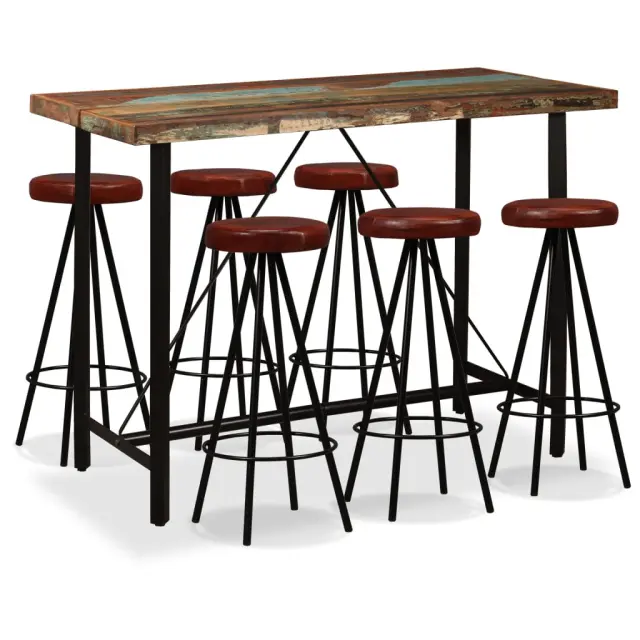 vidaXL Barska garnitura 7-delna trden predelan les in pravo usnje